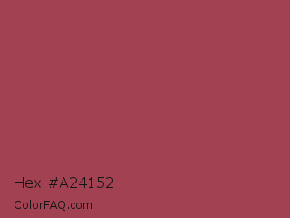 Hex #a24152 Color is a normal red color and the nearest color is English Red #ab4b52. Hex code #a24152 and RGB value is rgb(162,65,82). In RGB color space, this color is composed of 64% red, 25% green, 32% blue, In CMYK color space, this color is composed of 0% cyan, 60% magenta, 49% yellow , 36% black , In HSL color space, this color has a hue angle of 349° , 43% saturation and 45% lightness.