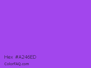 Hex #a246ed Color is a normal purple color and the nearest color is Navy Purple #9457eb. Hex code #a246ed and RGB value is rgb(162,70,237). In RGB color space, this color is composed of 64% red, 27% green, 93% blue, In CMYK color space, this color is composed of 32% cyan, 70% magenta, 0% yellow , 7% black , In HSL color space, this color has a hue angle of 273° , 82% saturation and 60% lightness.