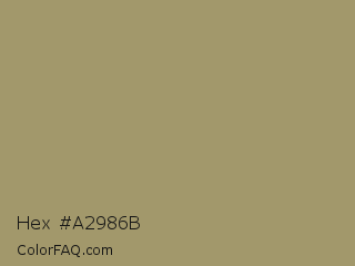 Hex #a2986b Color is a normal yellow color and the nearest color is Sandal #aa8d6f. Hex code #a2986b and RGB value is rgb(162,152,107). In RGB color space, this color is composed of 64% red, 60% green, 42% blue, In CMYK color space, this color is composed of 0% cyan, 6% magenta, 34% yellow , 36% black , In HSL color space, this color has a hue angle of 49° , 23% saturation and 53% lightness.