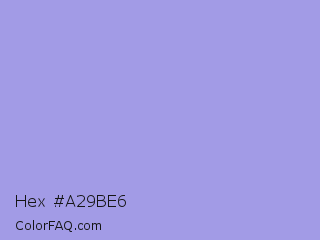 Hex #a29be6 Color is a light indigo color and the nearest color is Dull Lavender #a899e6. Hex code #a29be6 and RGB value is rgb(162,155,230). In RGB color space, this color is composed of 64% red, 61% green, 90% blue, In CMYK color space, this color is composed of 30% cyan, 33% magenta, 0% yellow , 10% black , In HSL color space, this color has a hue angle of 246° , 60% saturation and 75% lightness.