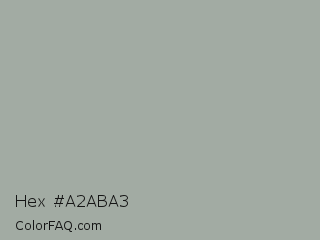 Hex #a2aba3 Color is a light green color and the nearest color is Quick Silver #a6a6a6. Hex code #a2aba3 and RGB value is rgb(162,171,163). In RGB color space, this color is composed of 64% red, 67% green, 64% blue, In CMYK color space, this color is composed of 5% cyan, 0% magenta, 5% yellow , 33% black , In HSL color space, this color has a hue angle of 127° , 5% saturation and 65% lightness.