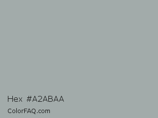 Hex #a2abaa Color is a light cyan color and the nearest color is Edward #a2aeab. Hex code #a2abaa and RGB value is rgb(162,171,170). In RGB color space, this color is composed of 64% red, 67% green, 67% blue, In CMYK color space, this color is composed of 5% cyan, 0% magenta, 1% yellow , 33% black , In HSL color space, this color has a hue angle of 173° , 5% saturation and 65% lightness.