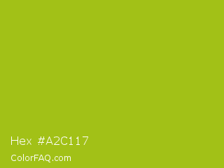 Hex #a2c117 Color is a normal lime color and the nearest color is Citrus #a1c50a. Hex code #a2c117 and RGB value is rgb(162,193,23). In RGB color space, this color is composed of 64% red, 76% green, 9% blue, In CMYK color space, this color is composed of 16% cyan, 0% magenta, 88% yellow , 24% black , In HSL color space, this color has a hue angle of 71° , 79% saturation and 42% lightness.