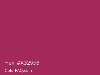 Hex #a32958 Color is a normal rose color and the nearest color is Amaranth Purple #ab274f. Hex code #a32958 and RGB value is rgb(163,41,88). In RGB color space, this color is composed of 64% red, 16% green, 35% blue, In CMYK color space, this color is composed of 0% cyan, 75% magenta, 46% yellow , 36% black , In HSL color space, this color has a hue angle of 337° , 60% saturation and 40% lightness.