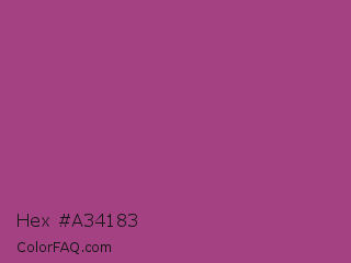 Hex #a34183 Color is a normal magenta color and the nearest color is Maximum Red Purple #a63a79. Hex code #a34183 and RGB value is rgb(163,65,131). In RGB color space, this color is composed of 64% red, 25% green, 51% blue, In CMYK color space, this color is composed of 0% cyan, 60% magenta, 20% yellow , 36% black , In HSL color space, this color has a hue angle of 320° , 43% saturation and 45% lightness.