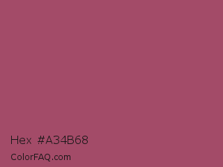 Hex #a34b68 Color is a normal rose color and the nearest color is China Rose #a8516e. Hex code #a34b68 and RGB value is rgb(163,75,104). In RGB color space, this color is composed of 64% red, 29% green, 41% blue, In CMYK color space, this color is composed of 0% cyan, 54% magenta, 36% yellow , 36% black , In HSL color space, this color has a hue angle of 340° , 37% saturation and 47% lightness.