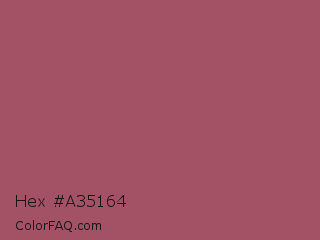 Hex #a35164 Color is a normal red color and the nearest color is China Rose #a8516e. Hex code #a35164 and RGB value is rgb(163,81,100). In RGB color space, this color is composed of 64% red, 32% green, 39% blue, In CMYK color space, this color is composed of 0% cyan, 50% magenta, 39% yellow , 36% black , In HSL color space, this color has a hue angle of 346° , 34% saturation and 48% lightness.