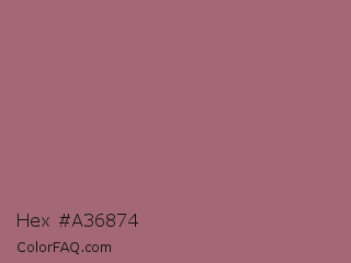 Hex #a36874 Color is a normal red color and the nearest color is Coral Tree #a86b6b. Hex code #a36874 and RGB value is rgb(163,104,116). In RGB color space, this color is composed of 64% red, 41% green, 45% blue, In CMYK color space, this color is composed of 0% cyan, 36% magenta, 29% yellow , 36% black , In HSL color space, this color has a hue angle of 348° , 24% saturation and 52% lightness.