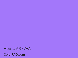Hex #a377fa Color is a light indigo color and the nearest color is Medium Purple #9370db. Hex code #a377fa and RGB value is rgb(163,119,250). In RGB color space, this color is composed of 64% red, 47% green, 98% blue, In CMYK color space, this color is composed of 35% cyan, 52% magenta, 0% yellow , 2% black , In HSL color space, this color has a hue angle of 260° , 93% saturation and 72% lightness.