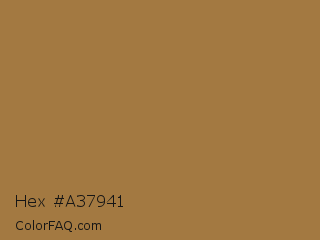 Hex #a37941 Color is a normal orange color and the nearest color is Metallic Sunburst #9c7c38. Hex code #a37941 and RGB value is rgb(163,121,65). In RGB color space, this color is composed of 64% red, 47% green, 25% blue, In CMYK color space, this color is composed of 0% cyan, 26% magenta, 60% yellow , 36% black , In HSL color space, this color has a hue angle of 34° , 43% saturation and 45% lightness.