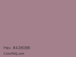 Hex #a3808b Color is a normal rose color and the nearest color is Mountbatten Pink #997a8d. Hex code #a3808b and RGB value is rgb(163,128,139). In RGB color space, this color is composed of 64% red, 50% green, 55% blue, In CMYK color space, this color is composed of 0% cyan, 21% magenta, 15% yellow , 36% black , In HSL color space, this color has a hue angle of 341° , 16% saturation and 57% lightness.