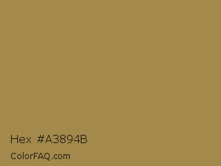 Hex #a3894b Color is a normal orange color and the nearest color is Driftwood #af8751. Hex code #a3894b and RGB value is rgb(163,137,75). In RGB color space, this color is composed of 64% red, 54% green, 29% blue, In CMYK color space, this color is composed of 0% cyan, 16% magenta, 54% yellow , 36% black , In HSL color space, this color has a hue angle of 42° , 37% saturation and 47% lightness.