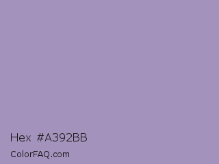 Hex #a392bb Color is a light violet color and the nearest color is Amethyst Smoke #a397b4. Hex code #a392bb and RGB value is rgb(163,146,187). In RGB color space, this color is composed of 64% red, 57% green, 73% blue, In CMYK color space, this color is composed of 13% cyan, 22% magenta, 0% yellow , 27% black , In HSL color space, this color has a hue angle of 265° , 23% saturation and 65% lightness.