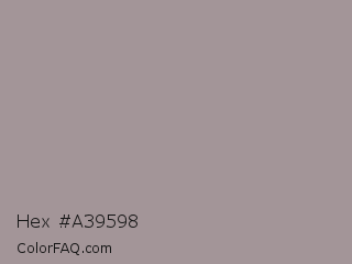 Hex #a39598 Color is a light red color and the nearest color is Dusty Gray #a8989b. Hex code #a39598 and RGB value is rgb(163,149,152). In RGB color space, this color is composed of 64% red, 58% green, 60% blue, In CMYK color space, this color is composed of 0% cyan, 9% magenta, 7% yellow , 36% black , In HSL color space, this color has a hue angle of 347° , 7% saturation and 61% lightness.
