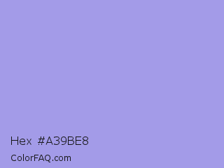 Hex #a39be8 Color is a light indigo color and the nearest color is Dull Lavender #a899e6. Hex code #a39be8 and RGB value is rgb(163,155,232). In RGB color space, this color is composed of 64% red, 61% green, 91% blue, In CMYK color space, this color is composed of 30% cyan, 33% magenta, 0% yellow , 9% black , In HSL color space, this color has a hue angle of 246° , 63% saturation and 76% lightness.