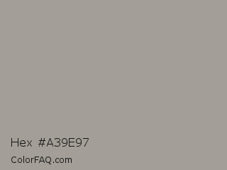 Hex #a39e97 Color is a light orange color and the nearest color is Dawn #a6a29a. Hex code #a39e97 and RGB value is rgb(163,158,151). In RGB color space, this color is composed of 64% red, 62% green, 59% blue, In CMYK color space, this color is composed of 0% cyan, 3% magenta, 7% yellow , 36% black , In HSL color space, this color has a hue angle of 35° , 6% saturation and 62% lightness.