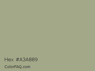Hex #a3a889 Color is a normal yellow color and the nearest color is Tallow #a8a589. Hex code #a3a889 and RGB value is rgb(163,168,137). In RGB color space, this color is composed of 64% red, 66% green, 54% blue, In CMYK color space, this color is composed of 3% cyan, 0% magenta, 18% yellow , 34% black , In HSL color space, this color has a hue angle of 70° , 15% saturation and 60% lightness.