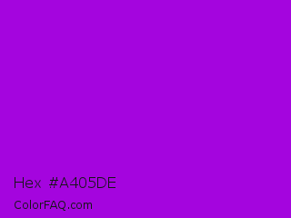 Hex #a405de Color is a normal purple color and the nearest color is Dark Violet #9400d3. Hex code #a405de and RGB value is rgb(164,5,222). In RGB color space, this color is composed of 64% red, 2% green, 87% blue, In CMYK color space, this color is composed of 26% cyan, 98% magenta, 0% yellow , 13% black , In HSL color space, this color has a hue angle of 284° , 96% saturation and 45% lightness.