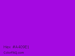 Hex #a409e1 Color is a normal purple color and the nearest color is Vivid Mulberry #b80ce3. Hex code #a409e1 and RGB value is rgb(164,9,225). In RGB color space, this color is composed of 64% red, 4% green, 88% blue, In CMYK color space, this color is composed of 27% cyan, 96% magenta, 0% yellow , 12% black , In HSL color space, this color has a hue angle of 283° , 92% saturation and 46% lightness.