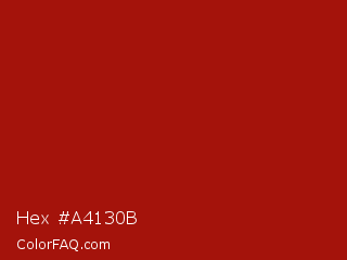 Hex #a4130b Color is a normal red color and the nearest color is Rufous #a81c07. Hex code #a4130b and RGB value is rgb(164,19,11). In RGB color space, this color is composed of 64% red, 7% green, 4% blue, In CMYK color space, this color is composed of 0% cyan, 88% magenta, 93% yellow , 36% black , In HSL color space, this color has a hue angle of 3° , 87% saturation and 34% lightness.