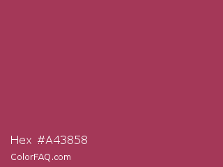 Hex #a43858 Color is a normal rose color and the nearest color is Night Shadz #aa375a. Hex code #a43858 and RGB value is rgb(164,56,88). In RGB color space, this color is composed of 64% red, 22% green, 35% blue, In CMYK color space, this color is composed of 0% cyan, 66% magenta, 46% yellow , 36% black , In HSL color space, this color has a hue angle of 342° , 49% saturation and 43% lightness.