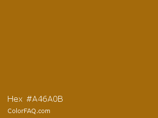Hex #a46a0b Color is a normal orange color and the nearest color is Buttered Rum #a1750d. Hex code #a46a0b and RGB value is rgb(164,106,11). In RGB color space, this color is composed of 64% red, 42% green, 4% blue, In CMYK color space, this color is composed of 0% cyan, 35% magenta, 93% yellow , 36% black , In HSL color space, this color has a hue angle of 37° , 87% saturation and 34% lightness.