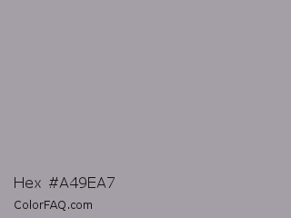 Hex #a49ea7 Color is a light purple color and the nearest color is Quick Silver #a6a6a6. Hex code #a49ea7 and RGB value is rgb(164,158,167). In RGB color space, this color is composed of 64% red, 62% green, 65% blue, In CMYK color space, this color is composed of 2% cyan, 5% magenta, 0% yellow , 35% black , In HSL color space, this color has a hue angle of 280° , 5% saturation and 64% lightness.