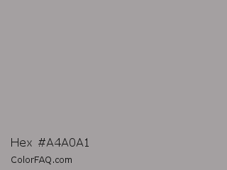 Hex #a4a0a1 Color is a light red color and the nearest color is Delta #a4a49d. Hex code #a4a0a1 and RGB value is rgb(164,160,161). In RGB color space, this color is composed of 64% red, 63% green, 63% blue, In CMYK color space, this color is composed of 0% cyan, 2% magenta, 2% yellow , 36% black , In HSL color space, this color has a hue angle of 345° , 2% saturation and 64% lightness.