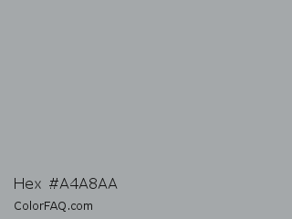Hex #a4a8aa Color is a light blue color and the nearest color is Quick Silver #a6a6a6. Hex code #a4a8aa and RGB value is rgb(164,168,170). In RGB color space, this color is composed of 64% red, 66% green, 67% blue, In CMYK color space, this color is composed of 4% cyan, 1% magenta, 0% yellow , 33% black , In HSL color space, this color has a hue angle of 200° , 3% saturation and 65% lightness.