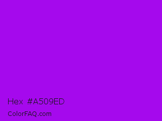 Hex #a509ed Color is a normal purple color and the nearest color is Vivid Violet #9f00ff. Hex code #a509ed and RGB value is rgb(165,9,237). In RGB color space, this color is composed of 65% red, 4% green, 93% blue, In CMYK color space, this color is composed of 30% cyan, 96% magenta, 0% yellow , 7% black , In HSL color space, this color has a hue angle of 281° , 93% saturation and 48% lightness.