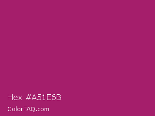 Hex #a51e6b Color is a normal magenta color and the nearest color is Amaranth Deep Purple #9f2b68. Hex code #a51e6b and RGB value is rgb(165,30,107). In RGB color space, this color is composed of 65% red, 12% green, 42% blue, In CMYK color space, this color is composed of 0% cyan, 82% magenta, 35% yellow , 35% black , In HSL color space, this color has a hue angle of 326° , 69% saturation and 38% lightness.