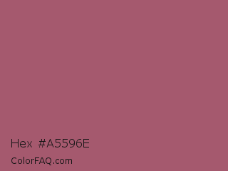 Hex #a5596e Color is a normal rose color and the nearest color is Deep Puce #a95c68. Hex code #a5596e and RGB value is rgb(165,89,110). In RGB color space, this color is composed of 65% red, 35% green, 43% blue, In CMYK color space, this color is composed of 0% cyan, 46% magenta, 33% yellow , 35% black , In HSL color space, this color has a hue angle of 343° , 30% saturation and 50% lightness.