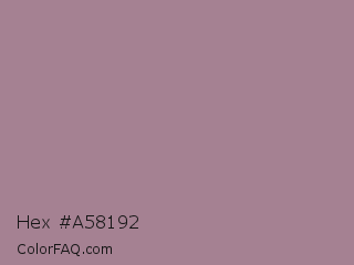 Hex #a58192 Color is a normal rose color and the nearest color is Mountbatten Pink #997a8d. Hex code #a58192 and RGB value is rgb(165,129,146). In RGB color space, this color is composed of 65% red, 51% green, 57% blue, In CMYK color space, this color is composed of 0% cyan, 22% magenta, 12% yellow , 35% black , In HSL color space, this color has a hue angle of 332° , 17% saturation and 58% lightness.