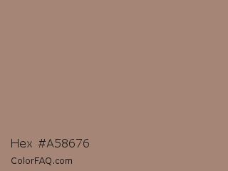 Hex #a58676 Color is a normal orange color and the nearest color is Pharlap #a3807b. Hex code #a58676 and RGB value is rgb(165,134,118). In RGB color space, this color is composed of 65% red, 53% green, 46% blue, In CMYK color space, this color is composed of 0% cyan, 19% magenta, 28% yellow , 35% black , In HSL color space, this color has a hue angle of 20° , 21% saturation and 55% lightness.