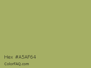 Hex #a5af64 Color is a normal yellow color and the nearest color is Green Smoke #a4af6e. Hex code #a5af64 and RGB value is rgb(165,175,100). In RGB color space, this color is composed of 65% red, 69% green, 39% blue, In CMYK color space, this color is composed of 6% cyan, 0% magenta, 43% yellow , 31% black , In HSL color space, this color has a hue angle of 68° , 32% saturation and 54% lightness.
