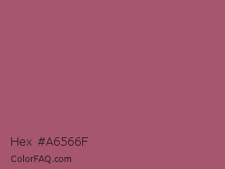 Hex #a6566f Color is a normal rose color and the nearest color is China Rose #a8516e. Hex code #a6566f and RGB value is rgb(166,86,111). In RGB color space, this color is composed of 65% red, 34% green, 44% blue, In CMYK color space, this color is composed of 0% cyan, 48% magenta, 33% yellow , 35% black , In HSL color space, this color has a hue angle of 341° , 32% saturation and 49% lightness.