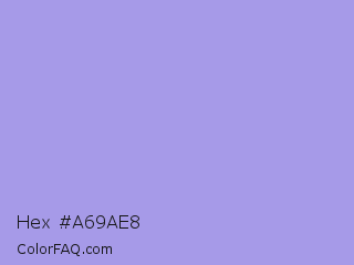 Hex #a69ae8 Color is a light indigo color and the nearest color is Dull Lavender #a899e6. Hex code #a69ae8 and RGB value is rgb(166,154,232). In RGB color space, this color is composed of 65% red, 60% green, 91% blue, In CMYK color space, this color is composed of 28% cyan, 34% magenta, 0% yellow , 9% black , In HSL color space, this color has a hue angle of 249° , 63% saturation and 76% lightness.