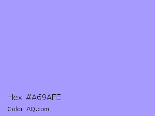 Hex #a69afe Color is a light indigo color and the nearest color is Dull Lavender #a899e6. Hex code #a69afe and RGB value is rgb(166,154,254). In RGB color space, this color is composed of 65% red, 60% green, 100% blue, In CMYK color space, this color is composed of 35% cyan, 39% magenta, 0% yellow , 0% black , In HSL color space, this color has a hue angle of 247° , 98% saturation and 80% lightness.