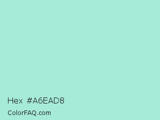 Hex #a6ead8 Color is a light cyan color and the nearest color is Water Leaf #a1e9de. Hex code #a6ead8 and RGB value is rgb(166,234,216). In RGB color space, this color is composed of 65% red, 92% green, 85% blue, In CMYK color space, this color is composed of 29% cyan, 0% magenta, 8% yellow , 8% black , In HSL color space, this color has a hue angle of 164° , 62% saturation and 78% lightness.