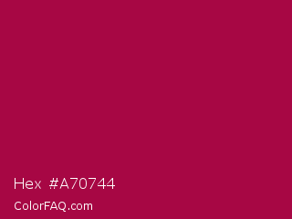 Hex #a70744 Color is a normal rose color and the nearest color is Pink Raspberry #980036. Hex code #a70744 and RGB value is rgb(167,7,68). In RGB color space, this color is composed of 65% red, 3% green, 27% blue, In CMYK color space, this color is composed of 0% cyan, 96% magenta, 59% yellow , 35% black , In HSL color space, this color has a hue angle of 337° , 92% saturation and 34% lightness.