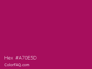 Hex #a70e5d Color is a normal rose color and the nearest color is Jazzberry Jam #a50b5e. Hex code #a70e5d and RGB value is rgb(167,14,93). In RGB color space, this color is composed of 65% red, 5% green, 36% blue, In CMYK color space, this color is composed of 0% cyan, 92% magenta, 44% yellow , 35% black , In HSL color space, this color has a hue angle of 329° , 85% saturation and 35% lightness.