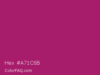 Hex #a71c6b Color is a normal magenta color and the nearest color is Amaranth Deep Purple #9f2b68. Hex code #a71c6b and RGB value is rgb(167,28,107). In RGB color space, this color is composed of 65% red, 11% green, 42% blue, In CMYK color space, this color is composed of 0% cyan, 83% magenta, 36% yellow , 35% black , In HSL color space, this color has a hue angle of 326° , 71% saturation and 38% lightness.
