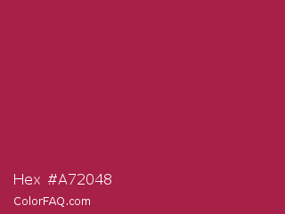 Hex #a72048 Color is a normal rose color and the nearest color is French Wine #ac1e44. Hex code #a72048 and RGB value is rgb(167,32,72). In RGB color space, this color is composed of 65% red, 13% green, 28% blue, In CMYK color space, this color is composed of 0% cyan, 81% magenta, 57% yellow , 35% black , In HSL color space, this color has a hue angle of 342° , 68% saturation and 39% lightness.