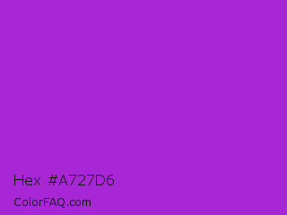 Hex #a727d6 Color is a normal purple color and the nearest color is Dark Orchid #9932cc. Hex code #a727d6 and RGB value is rgb(167,39,214). In RGB color space, this color is composed of 65% red, 15% green, 84% blue, In CMYK color space, this color is composed of 22% cyan, 82% magenta, 0% yellow , 16% black , In HSL color space, this color has a hue angle of 284° , 69% saturation and 50% lightness.