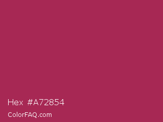 Hex #a72854 Color is a normal rose color and the nearest color is Amaranth Purple #ab274f. Hex code #a72854 and RGB value is rgb(167,40,84). In RGB color space, this color is composed of 65% red, 16% green, 33% blue, In CMYK color space, this color is composed of 0% cyan, 76% magenta, 50% yellow , 35% black , In HSL color space, this color has a hue angle of 339° , 61% saturation and 41% lightness.
