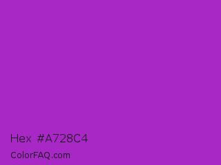 Hex #a728c4 Color is a normal purple color and the nearest color is Dark Orchid #9932cc. Hex code #a728c4 and RGB value is rgb(167,40,196). In RGB color space, this color is composed of 65% red, 16% green, 77% blue, In CMYK color space, this color is composed of 15% cyan, 80% magenta, 0% yellow , 23% black , In HSL color space, this color has a hue angle of 289° , 66% saturation and 46% lightness.