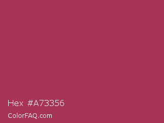 Hex #a73356 Color is a normal rose color and the nearest color is Night Shadz #aa375a. Hex code #a73356 and RGB value is rgb(167,51,86). In RGB color space, this color is composed of 65% red, 20% green, 34% blue, In CMYK color space, this color is composed of 0% cyan, 69% magenta, 49% yellow , 35% black , In HSL color space, this color has a hue angle of 342° , 53% saturation and 43% lightness.