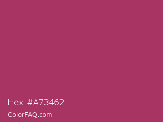 Hex #a73462 Color is a normal rose color and the nearest color is Night Shadz #aa375a. Hex code #a73462 and RGB value is rgb(167,52,98). In RGB color space, this color is composed of 65% red, 20% green, 38% blue, In CMYK color space, this color is composed of 0% cyan, 69% magenta, 41% yellow , 35% black , In HSL color space, this color has a hue angle of 336° , 53% saturation and 43% lightness.