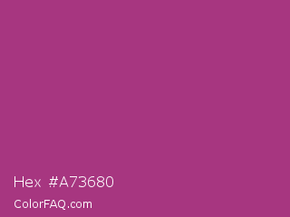 Hex #a73680 Color is a normal magenta color and the nearest color is Maximum Red Purple #a63a79. Hex code #a73680 and RGB value is rgb(167,54,128). In RGB color space, this color is composed of 65% red, 21% green, 50% blue, In CMYK color space, this color is composed of 0% cyan, 68% magenta, 23% yellow , 35% black , In HSL color space, this color has a hue angle of 321° , 51% saturation and 43% lightness.