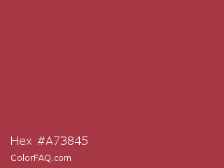 Hex #a73845 Color is a normal red color and the nearest color is Stiletto #9c3336. Hex code #a73845 and RGB value is rgb(167,56,69). In RGB color space, this color is composed of 65% red, 22% green, 27% blue, In CMYK color space, this color is composed of 0% cyan, 66% magenta, 59% yellow , 35% black , In HSL color space, this color has a hue angle of 353° , 50% saturation and 44% lightness.